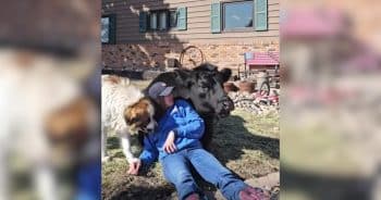 In a delightfully unexpected turn of events, a heartwarming scene turned into an amusing whirlwind at a modest family farm. What appeared to be a serene moment with Gunner, the affectionate Pyrenees mix, quickly escalated into a comical display of jealousy with Daisy, the resident cow, at its center.